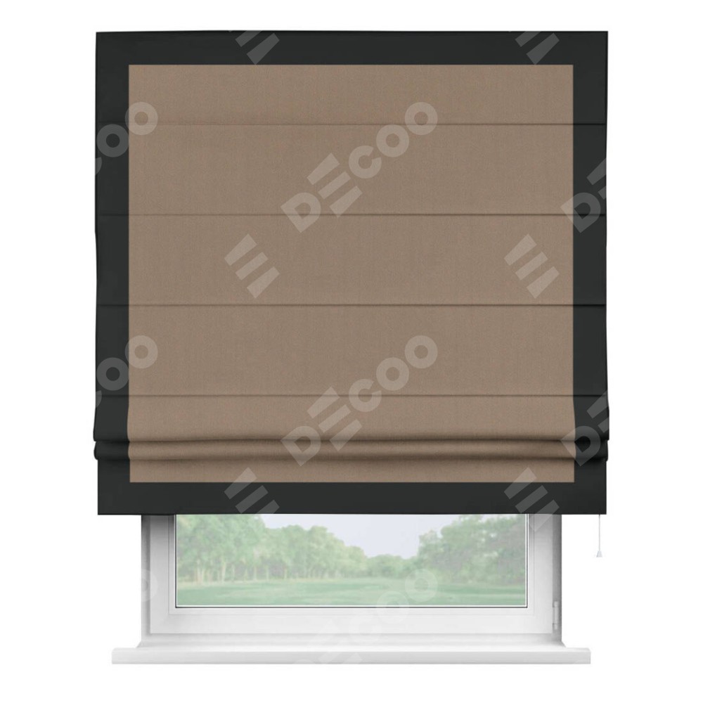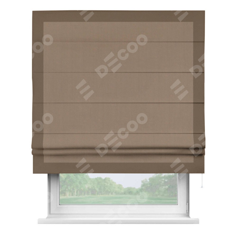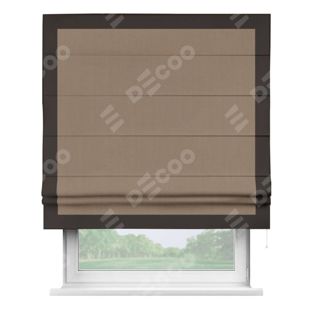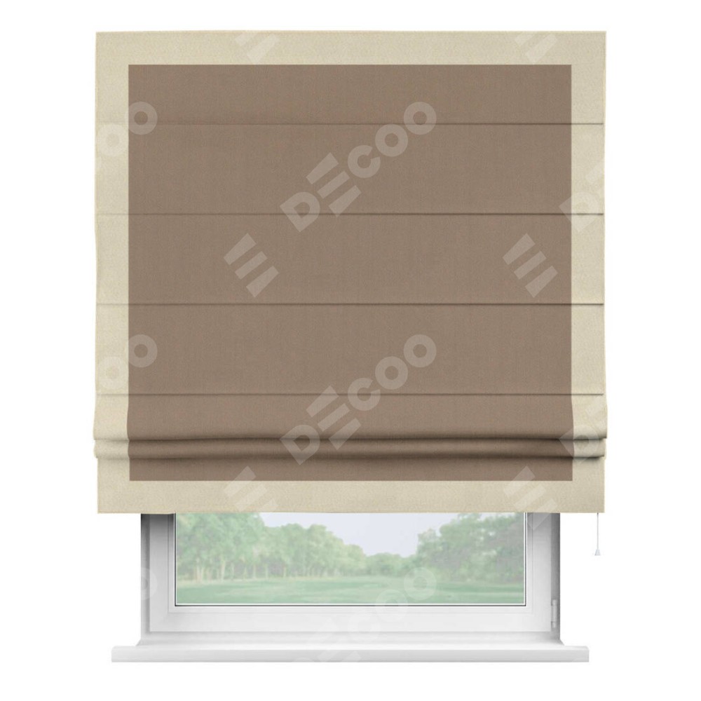 Римская штора «Cortin» для проёма, ткань блэкаут однотонный кофейно-бежевый с кантом Чесс