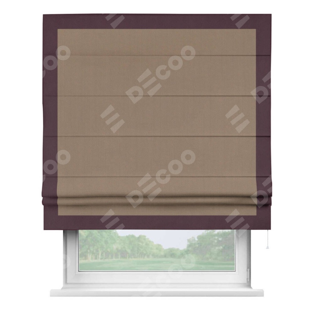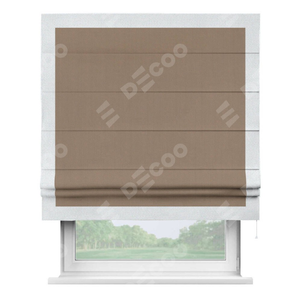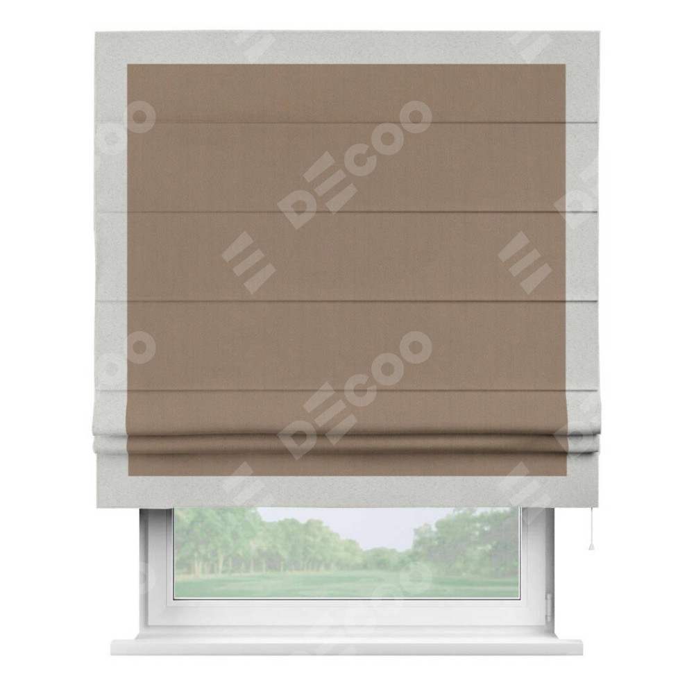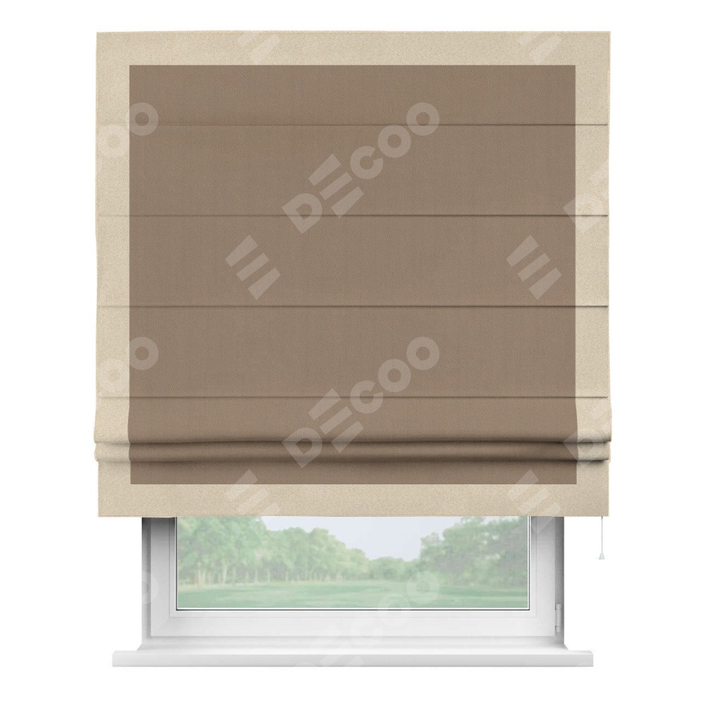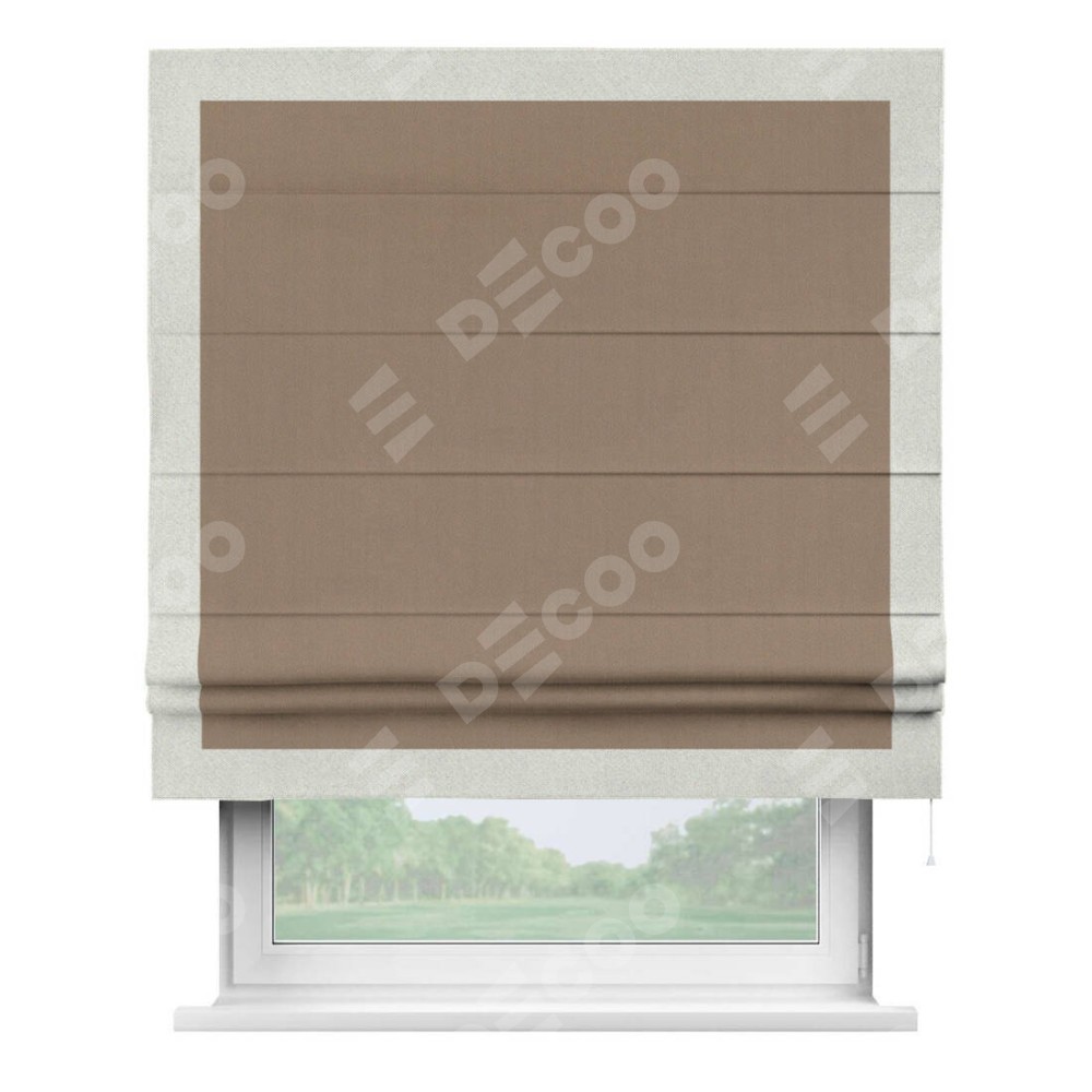 Римская штора «Cortin» для проёма, ткань блэкаут однотонный кофейно-бежевый с кантом Чесс