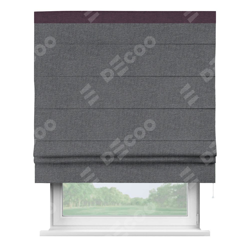 Римская штора «Кортин» для проёма, лён димаут графит с кантом Кинг