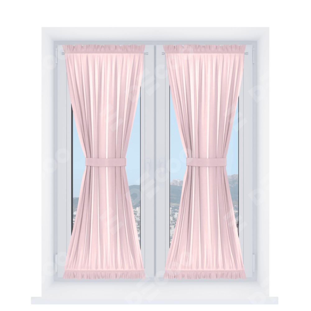 Штора «Песочные часы» производителя «Cortin», используется для створок окон и дверей, пошита из ткани блэкаут однотонный розовый, артикул ткани 83046.