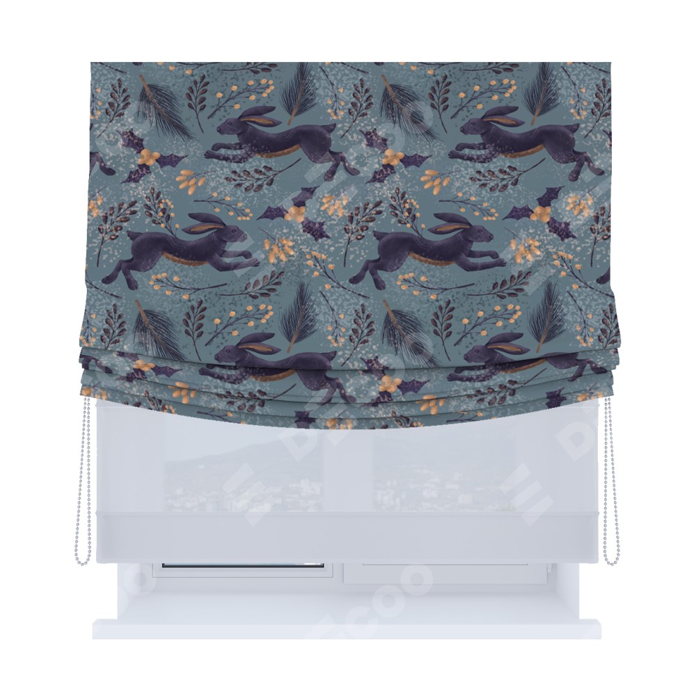 Римская штора «Кортин», день-ночь с мягкими складками, «Дарк арт зайцы»
