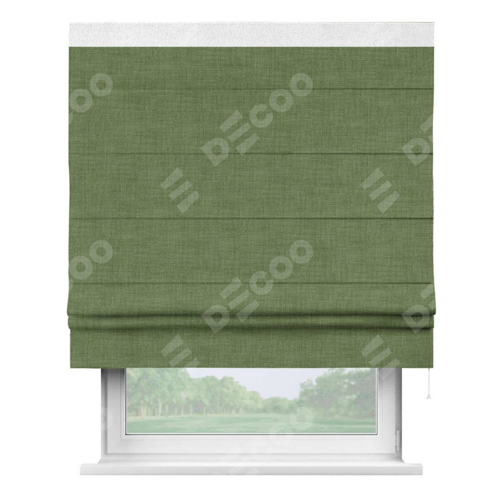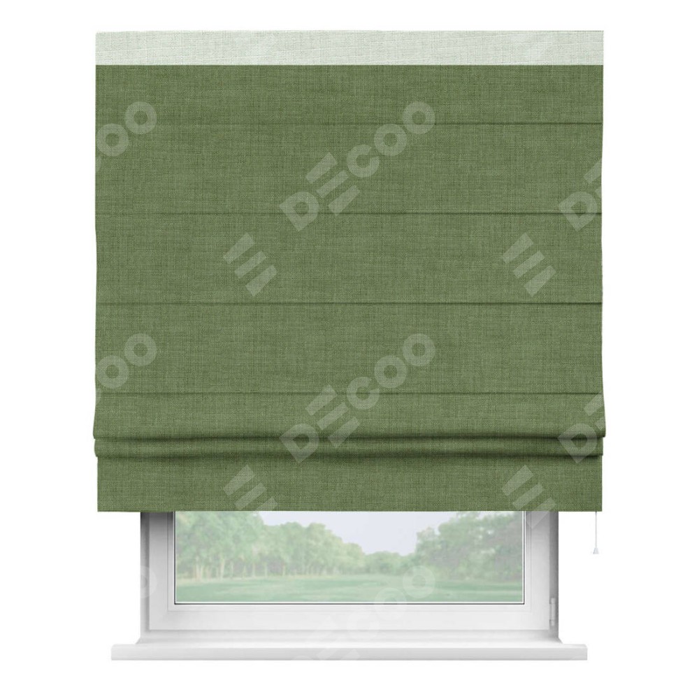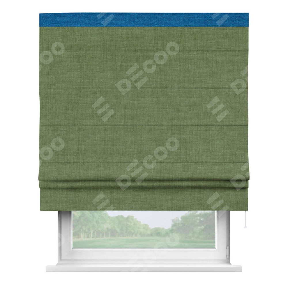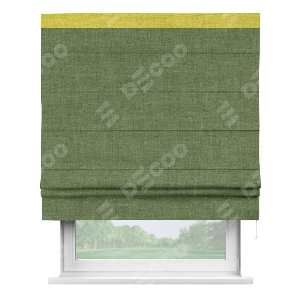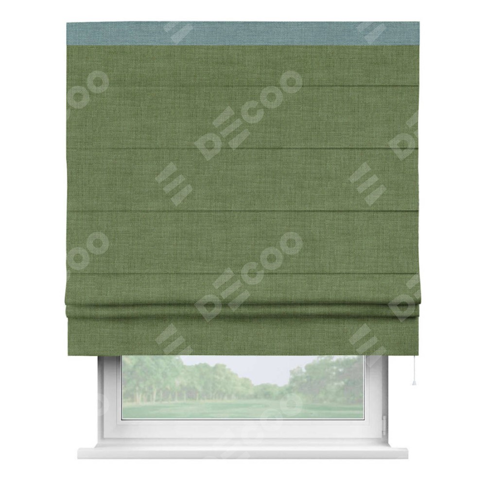 Римская штора «Кортин» для проёма, лён зелёный, с кантом Кинг