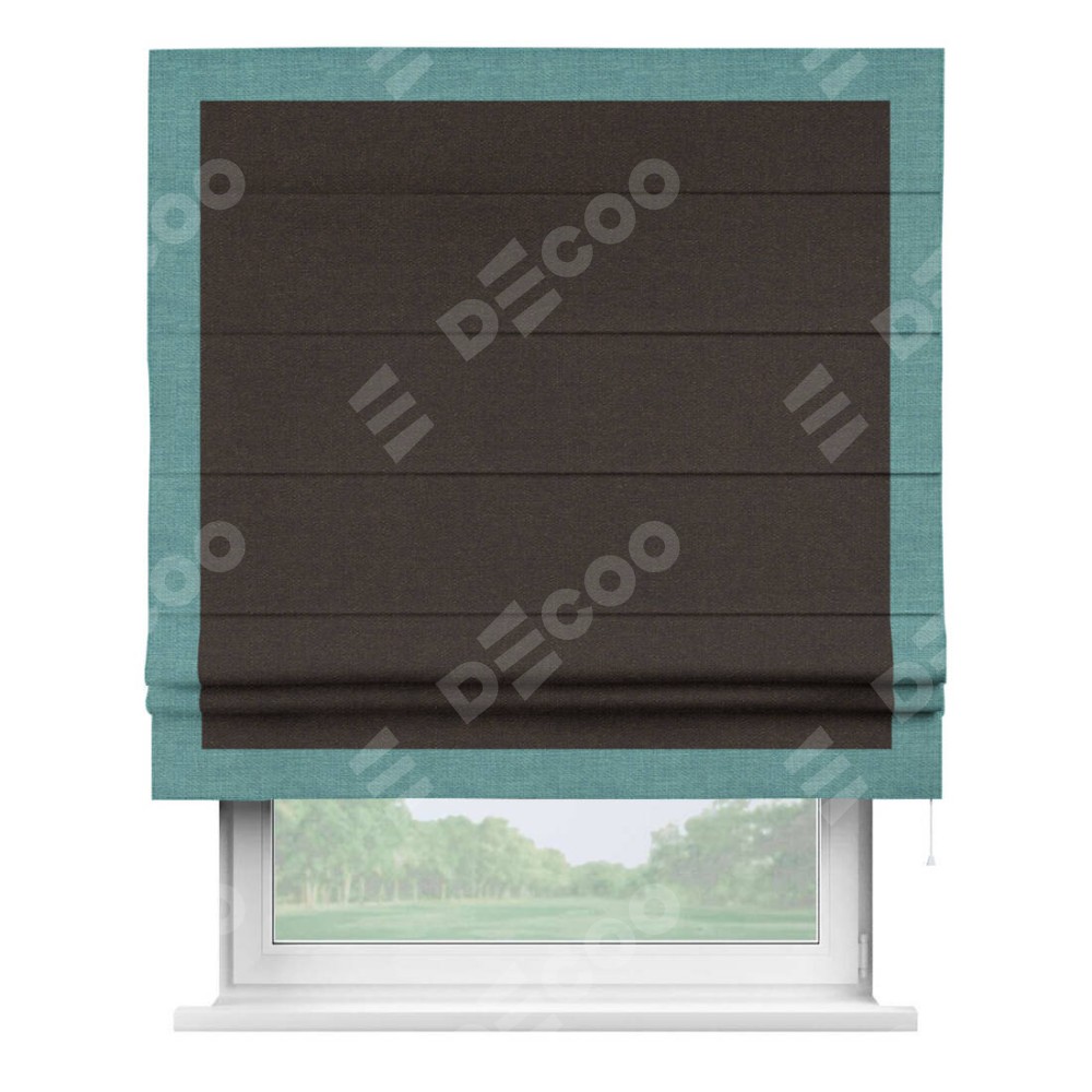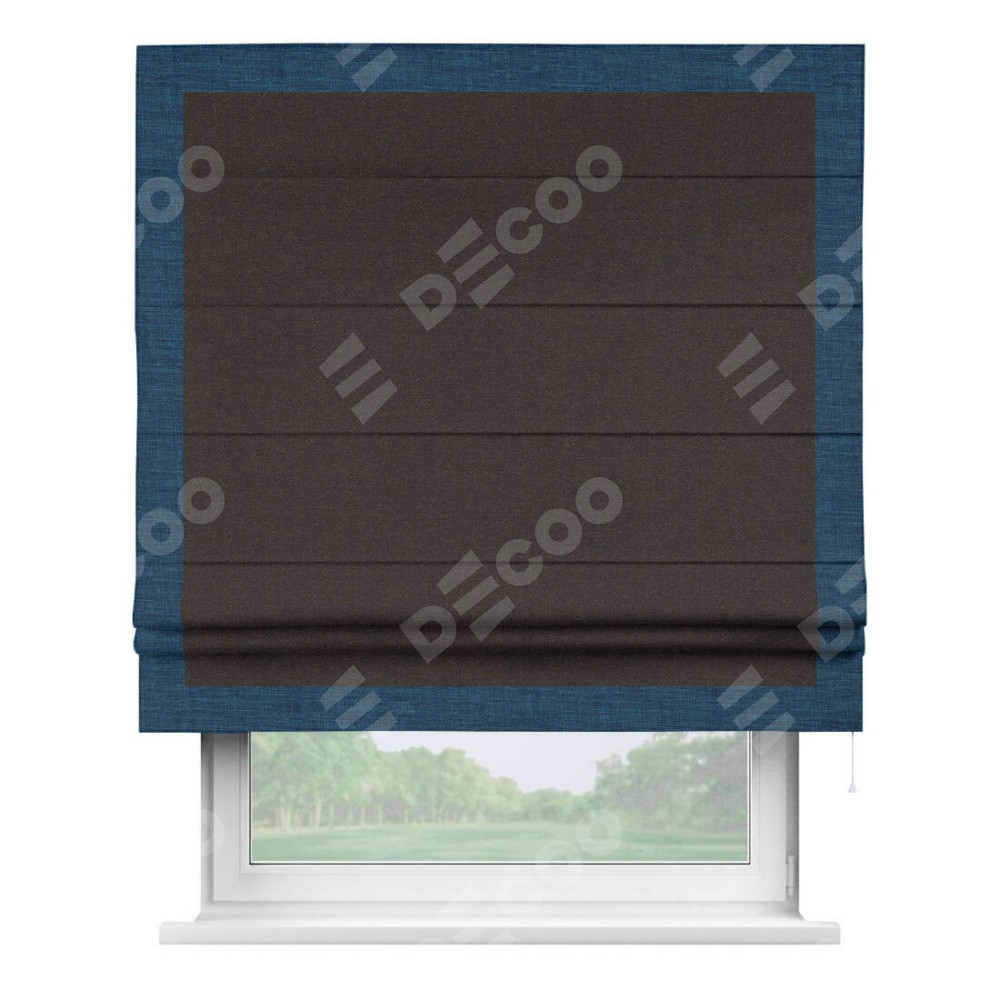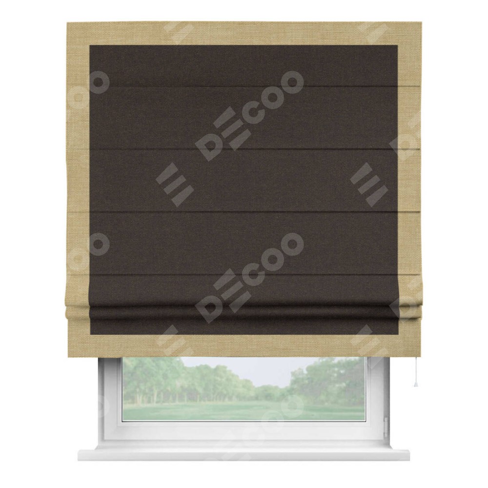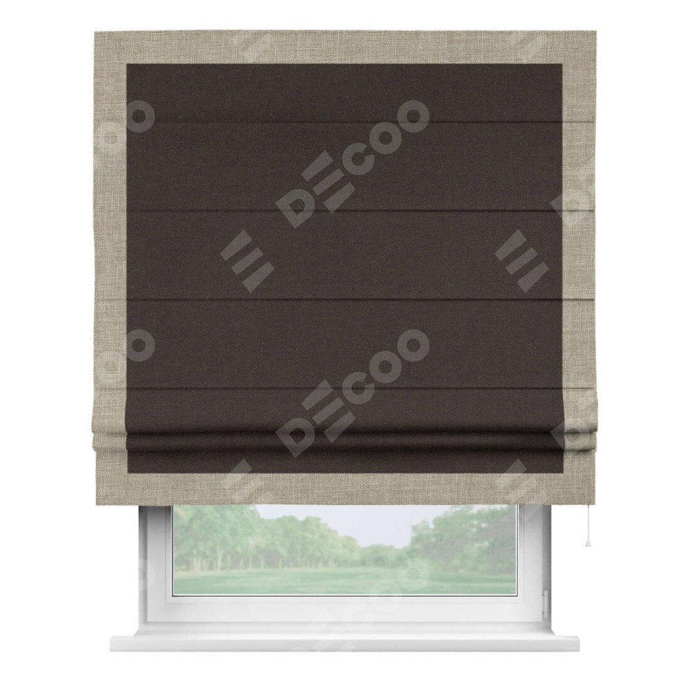 Римская штора «Кортин» для проёма, лён тёмно-коричневый, с кантом Чесс