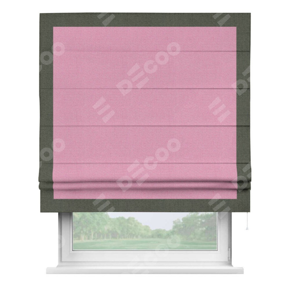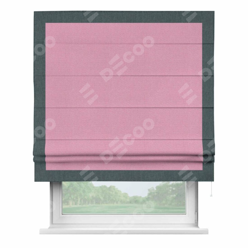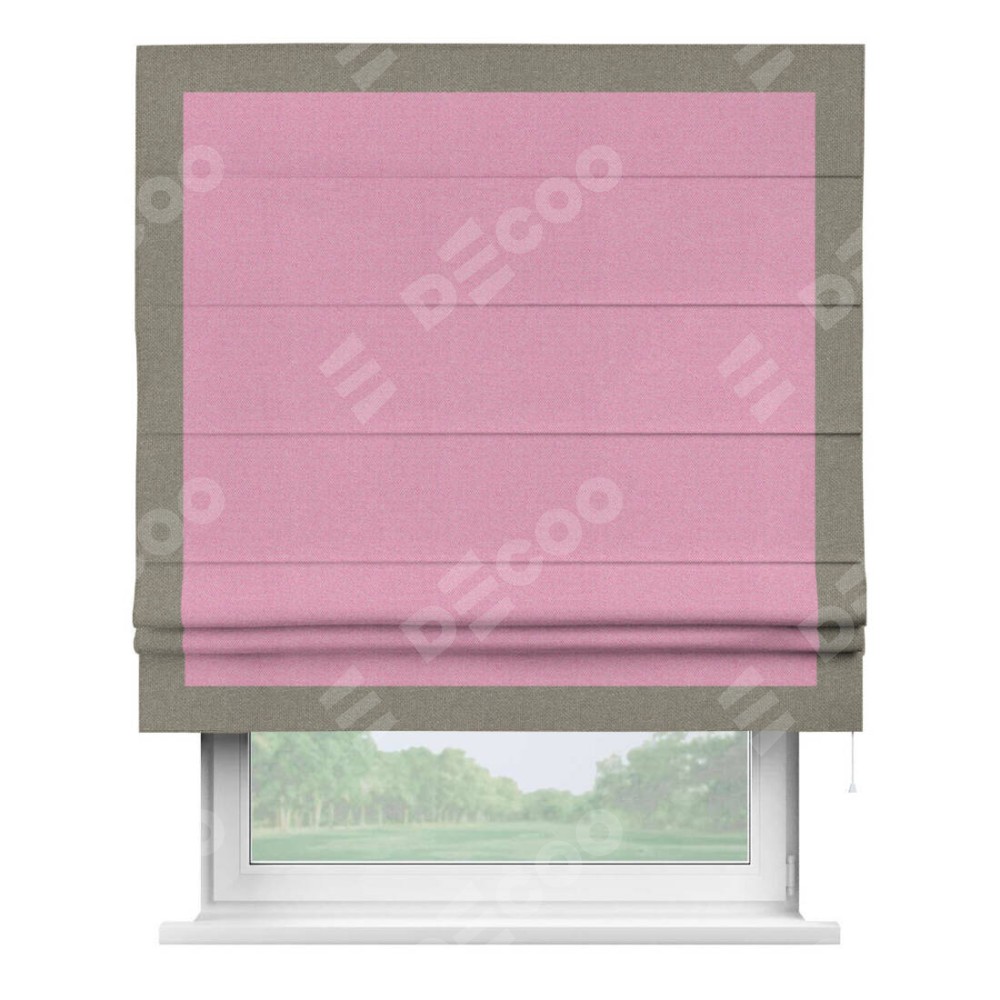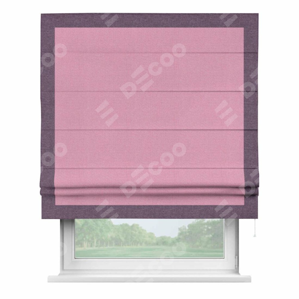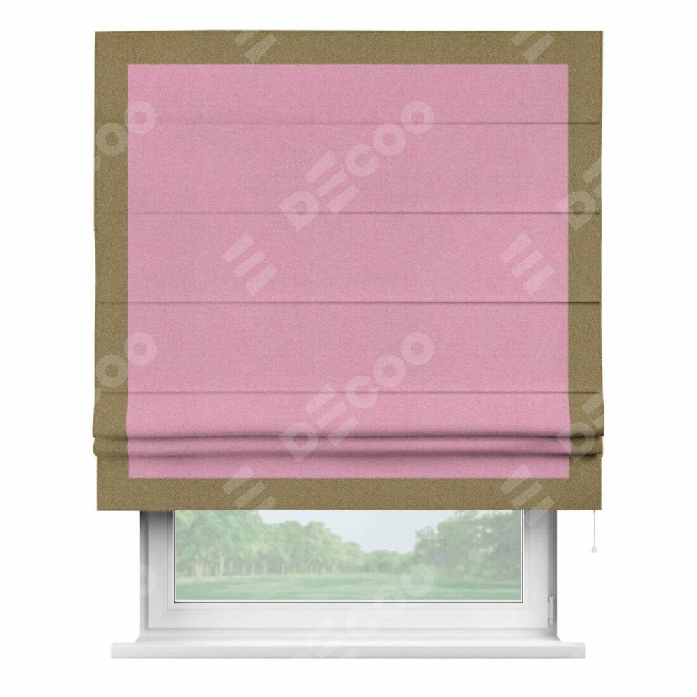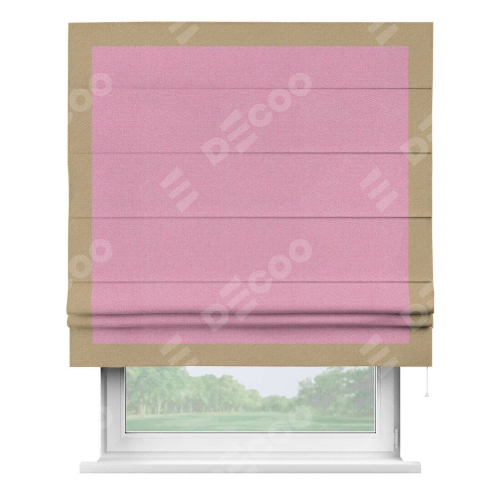 Римская штора «Кортин» с кантом Чесс, для проема, ткань лён димаут, розовый