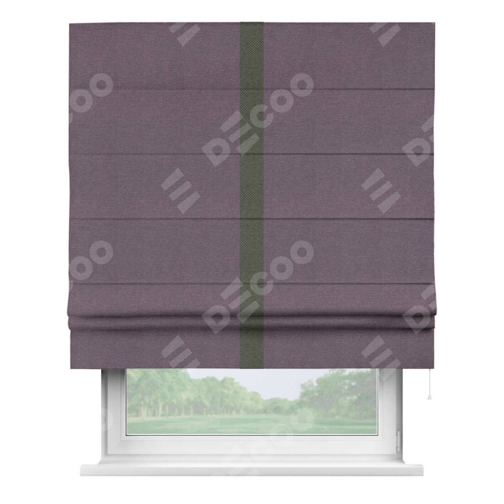 Римская штора производителя «Cortin», используется для проёма, пошита из ткани лён димаут светло-фиолетовый, артикул 83 034. Отделка шторы кантом «Хайвэй», ткань для канта используется из льна димаут разной расцветки на выбор. Имеет универсальный механизм и подходит для монтажа: на потолок, на стену и в нишу.