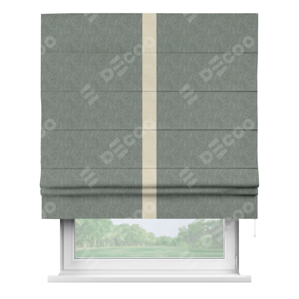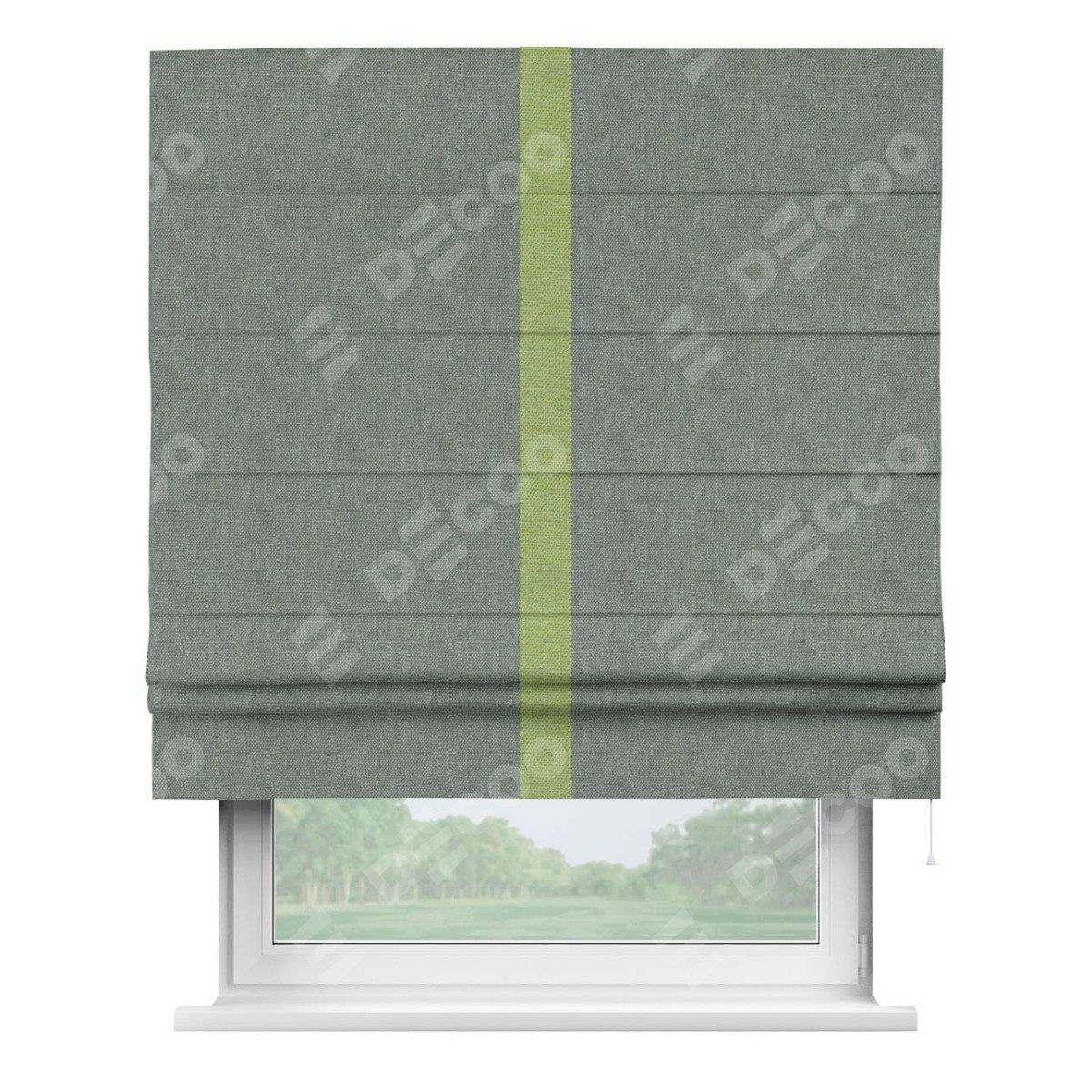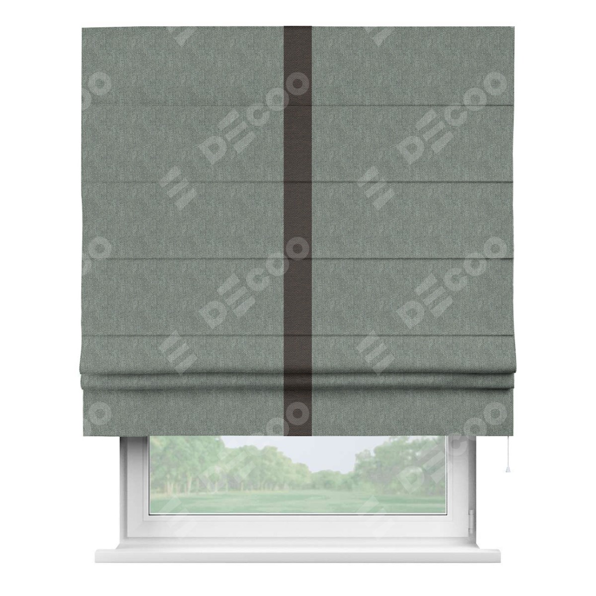 Римская штора производителя «Cortin», используется для проёма, пошита из ткани лён димаут серый, артикул 16 240. Отделка шторы кантом «Хайвэй», ткань для канта используется из льна димаут разной расцветки на выбор. Имеет универсальный механизм и подходит для монтажа: на потолок, на стену и в нишу.