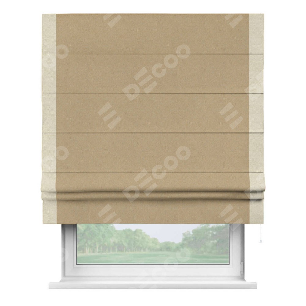 Римская штора «Кортин» с кантом Стрим Дуо, для проема, ткань лён димаут, тёмно-бежевый