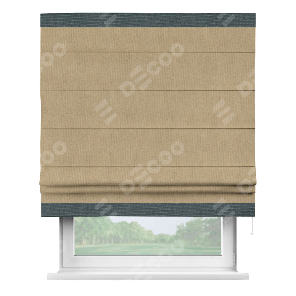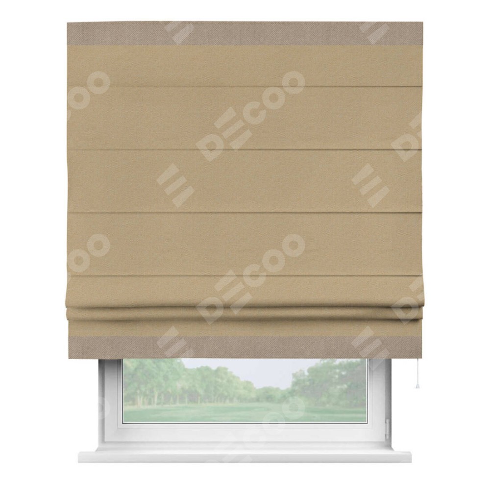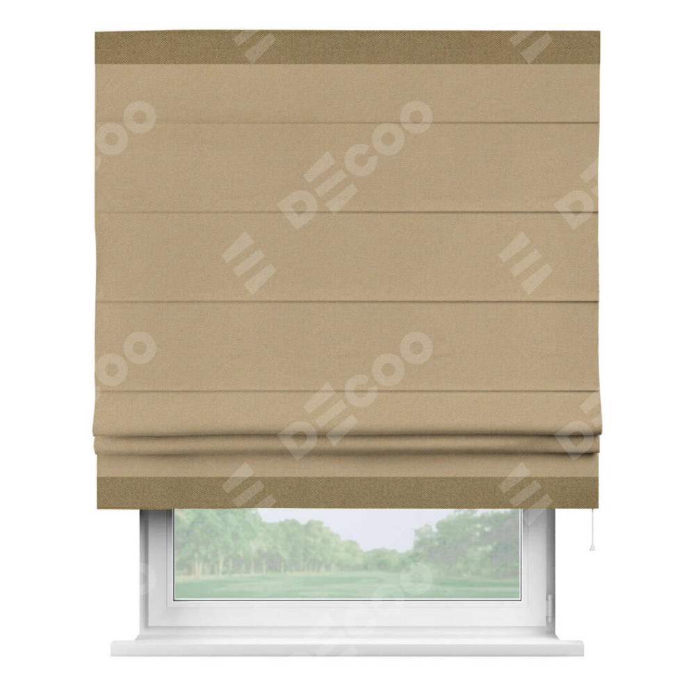Римская штора «Кортин» с кантом Горизонт, для проема, ткань лён димаут, тёмно-бежевый
