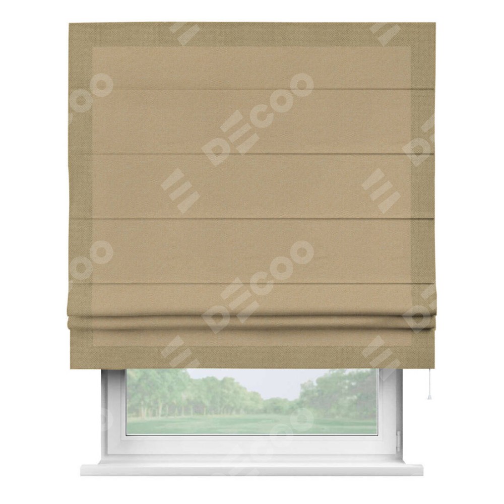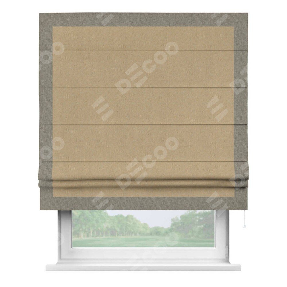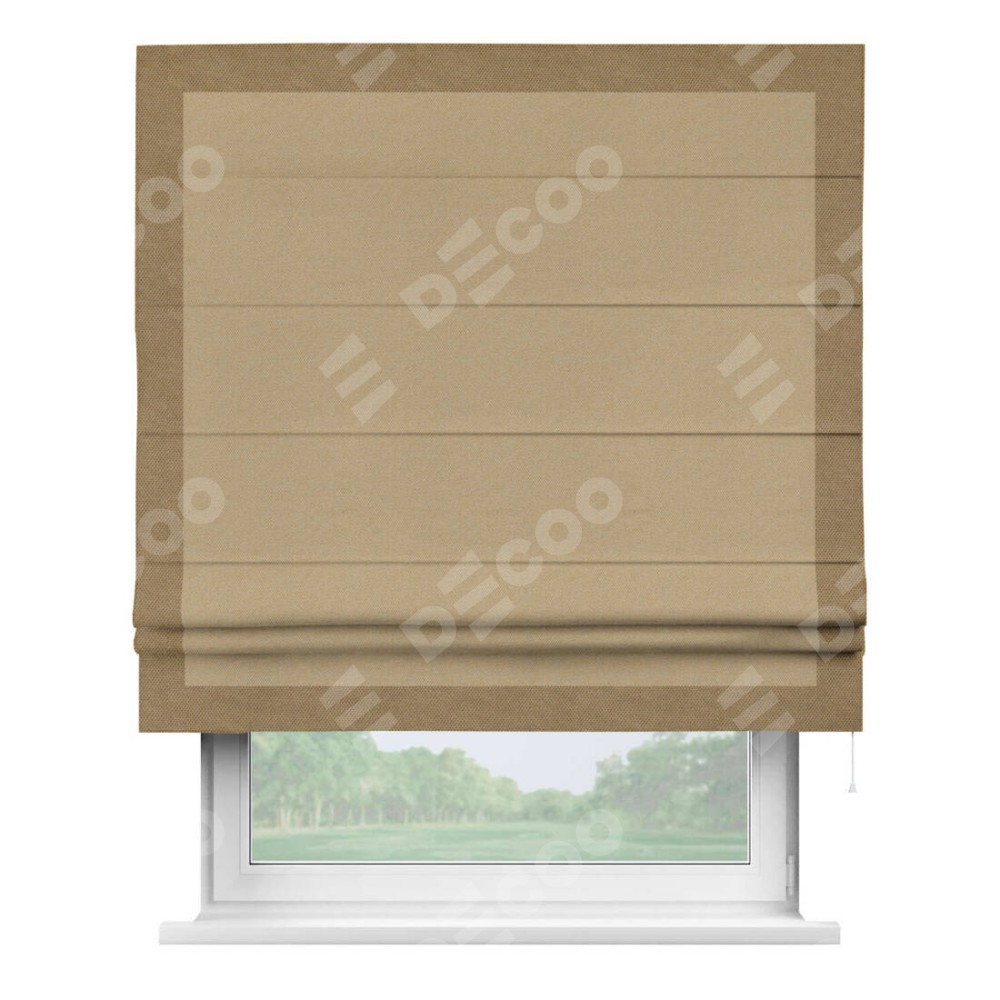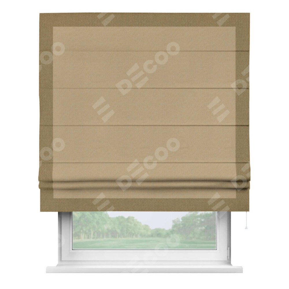 Римская штора «Кортин» с кантом Чесс, для проема, ткань лён димаут, тёмно-бежевый