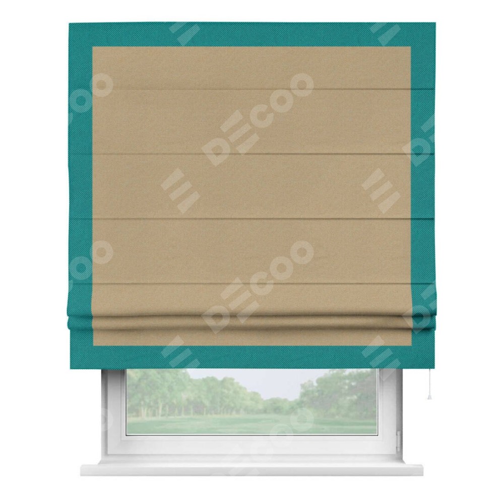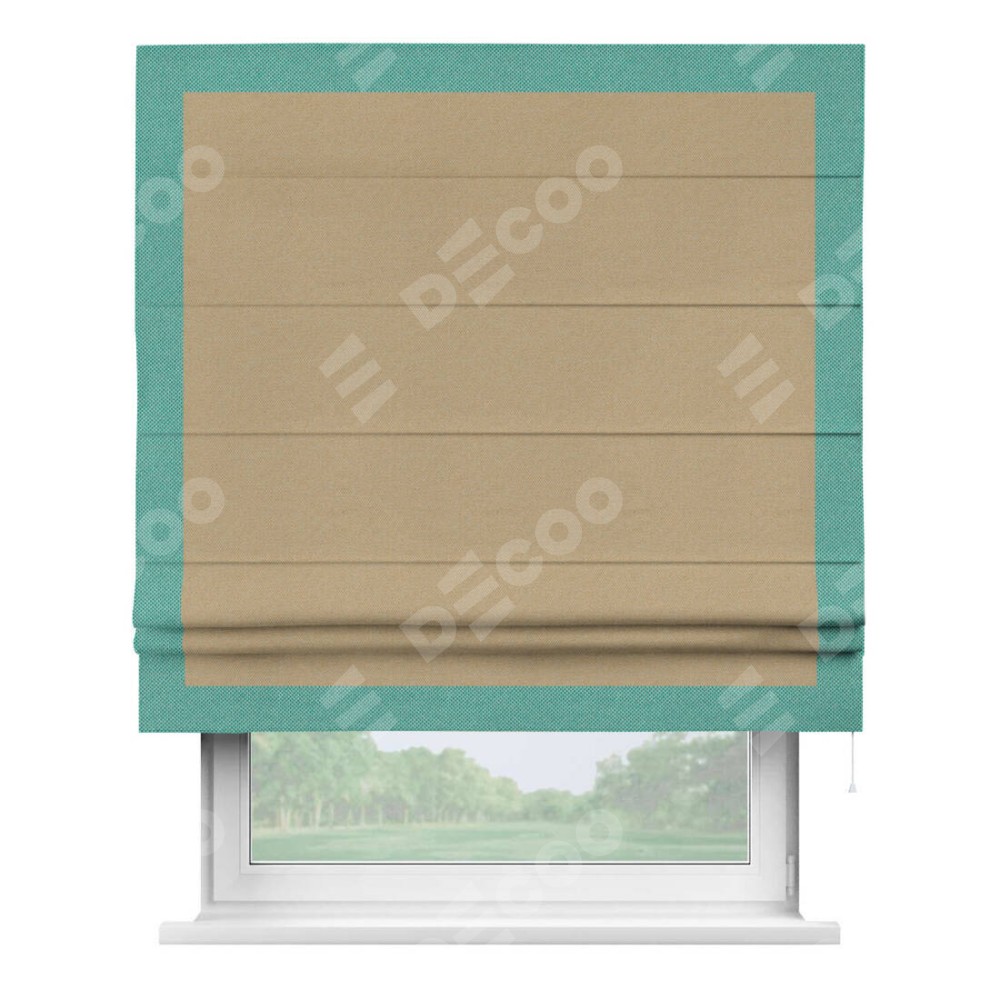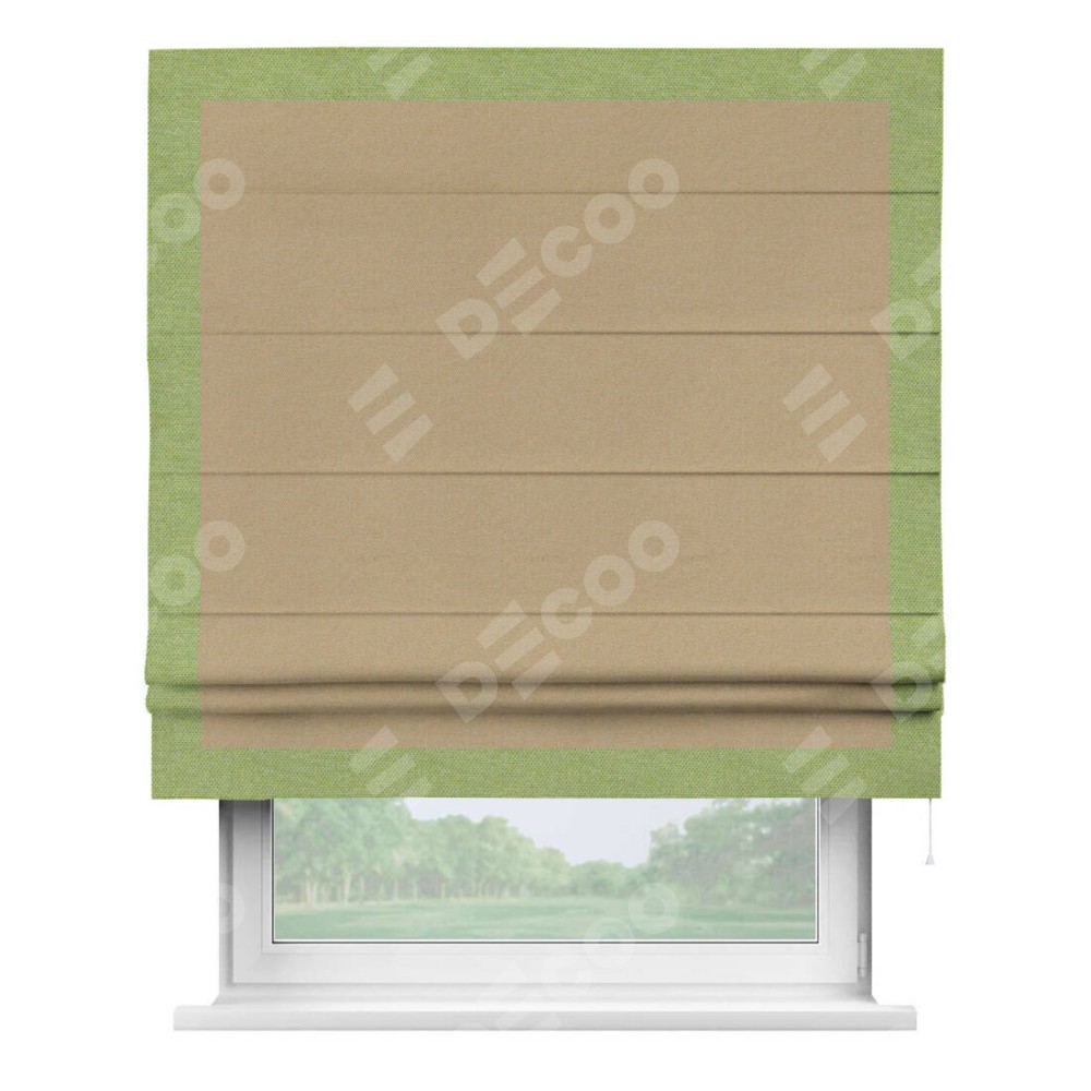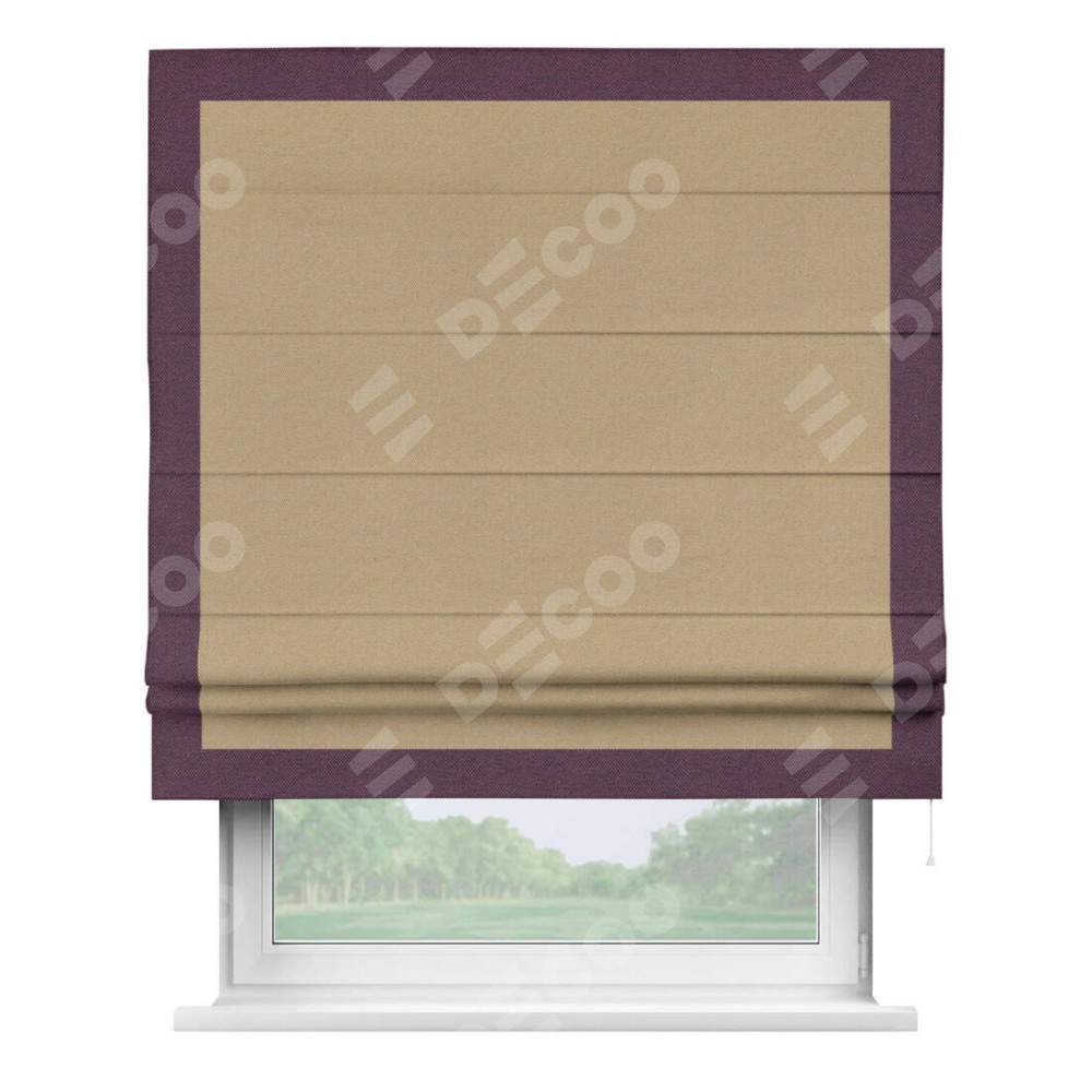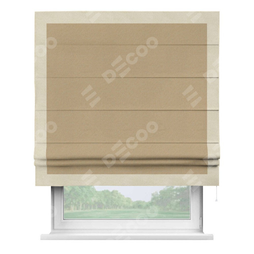 Римская штора «Кортин» с кантом Чесс, для проема, ткань лён димаут, тёмно-бежевый
