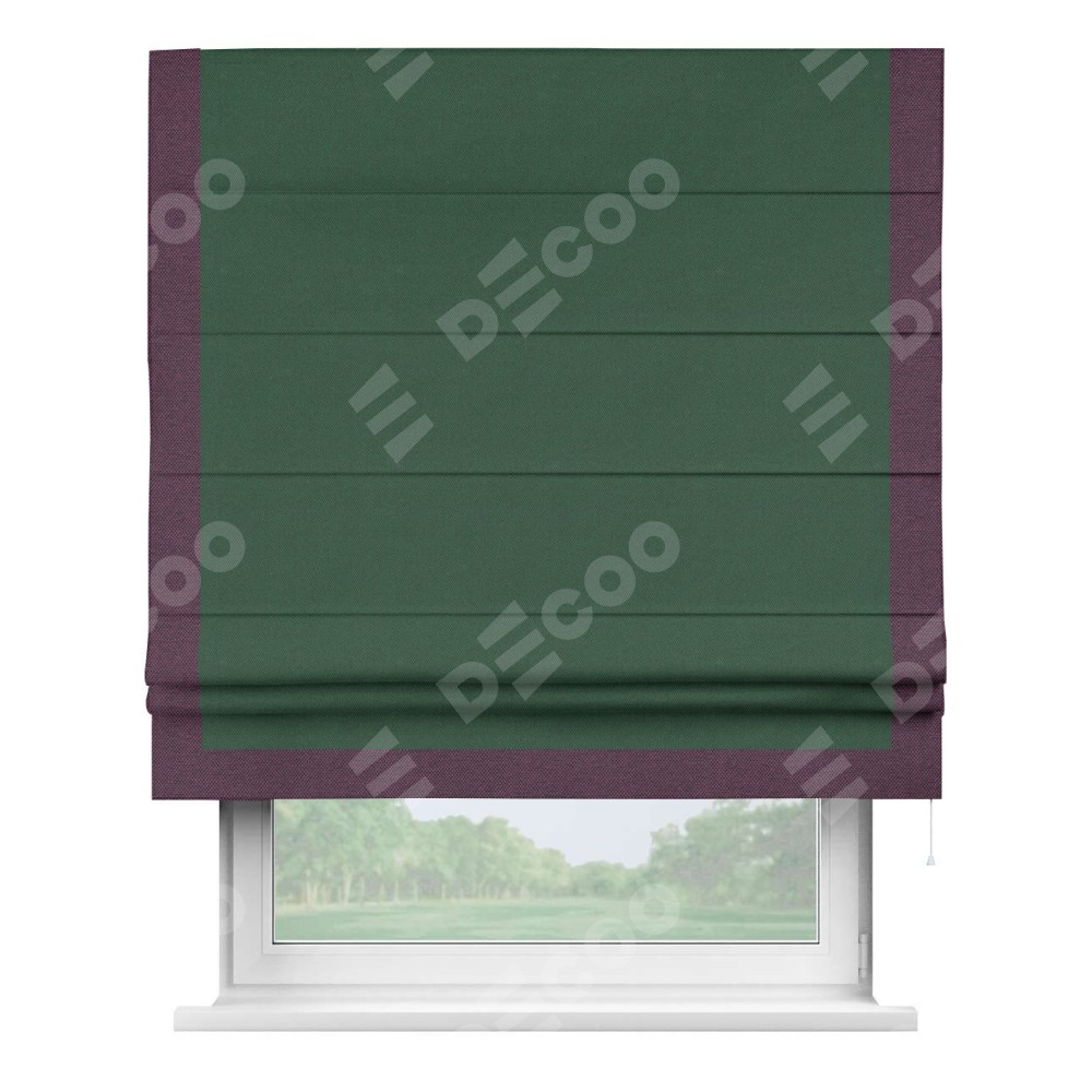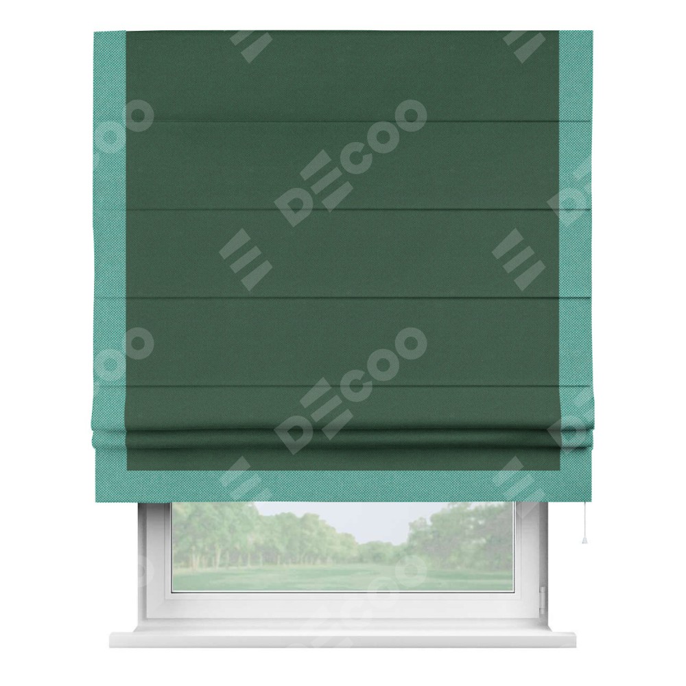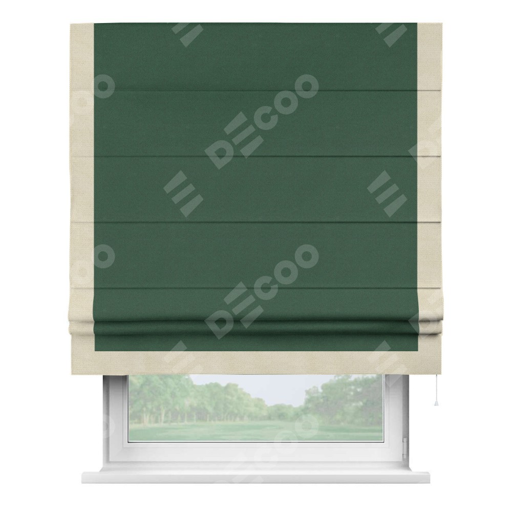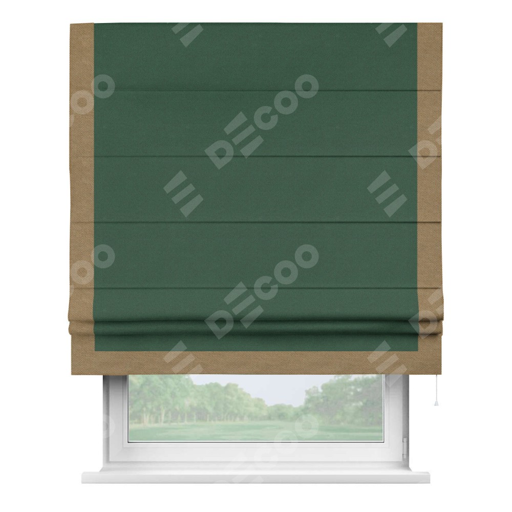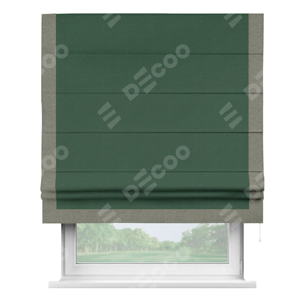Римская штора «Кортин» с кантом Виктория, для проема, ткань лён димаут, тёмно-зелёный