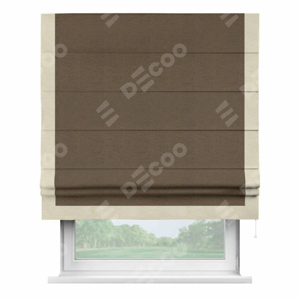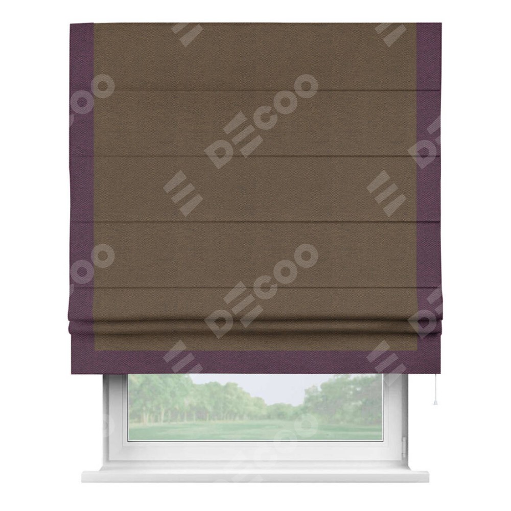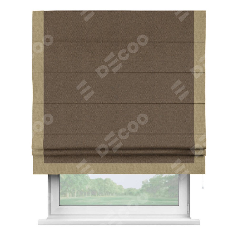 Римская штора «Кортин» с кантом Виктория, для проема, ткань лён димаут, тёмно-коричневый