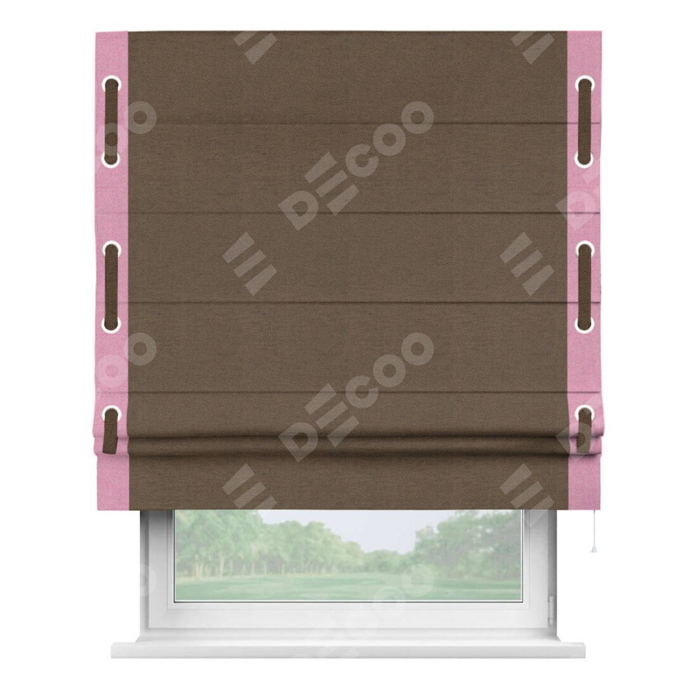 Римская штора «Кортин» с кантом Стрим Дуо (люверсы с пояском), для проема, ткань лён димаут, тёмно-коричневый