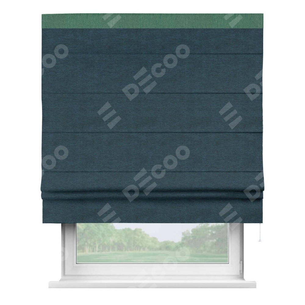 Римская штора производителя «Cortin», используется для проёма, пошита из ткани твид блэкаут глубокий синий, артикул 21590. Отделка шторы кантом «Кинг», ткань для канта используется из твида разной расцветки на выбор. Имеет универсальный механизм и подходит для монтажа: на потолок, на стену и в нишу.