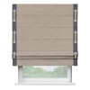 Римская штора производителя «Cortin», используется для проёма, пошита из ткани софт однотонный темно-бежевый, артикул 1640. Отделка шторы кантом «Стрим Дуо» на кантах расположены люверсы с пояском, ткань для канта используется из софта разной расцветки на выбор. Ткань для пояска обычно используется из основной ткани шторы, а так же можно сделать из любой расцветки по желанию. Имеет универсальный механизм и подходит для монтажа: на потолок, на стену и в нишу.
