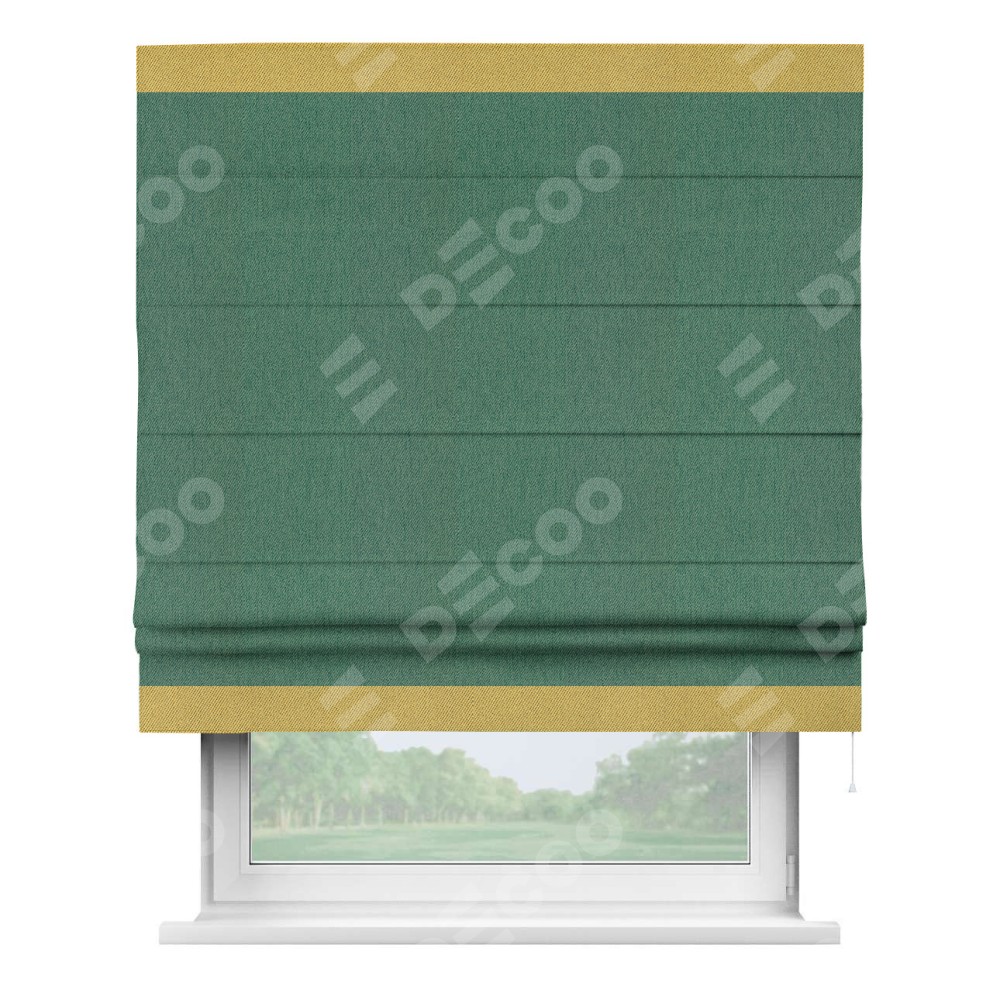 Римская штора «Кортин» с кантом Горизонт, для проема, ткань твид блэкаут, зелёный