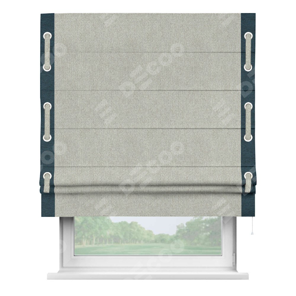 Римская штора «Кортин» с кантом Стрим Дуо (люверсы с пояском) предоставлена в следующих характеристиках: