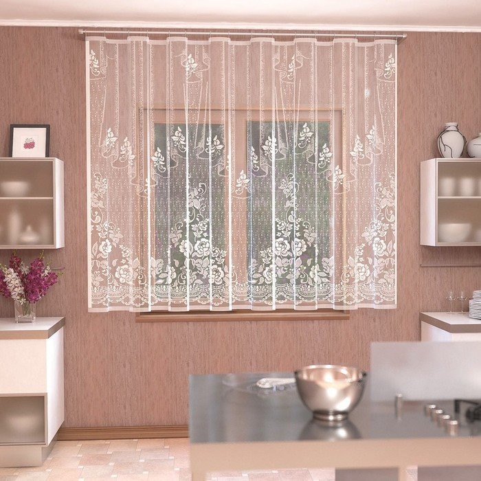 Штора кухонная 290×170 см, белый, 100% п/э, шторная лента