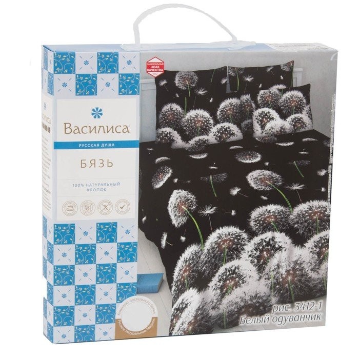Постельное бельё 1,5 сп. «Василиса» Белые одуванчики, 145×215 см, 150×214 см, 70×70 см — 2 шт.