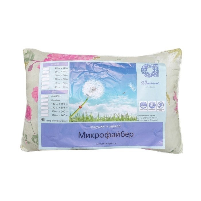 Подушка Адамас синтетическая, размер 40×60 см, холлофайбер, чехол МИКС