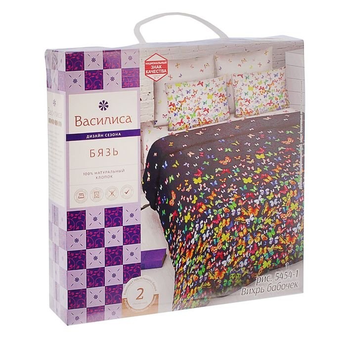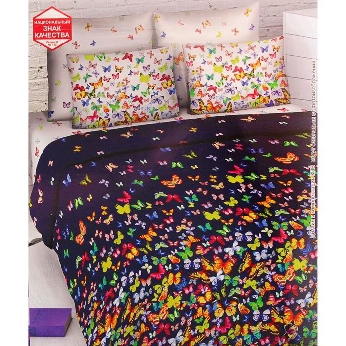Постельное бельё 2 сп. «Василиса» Вихрь бабочек 175×215 см, 200×220 см, 70×70 см — 2 шт.