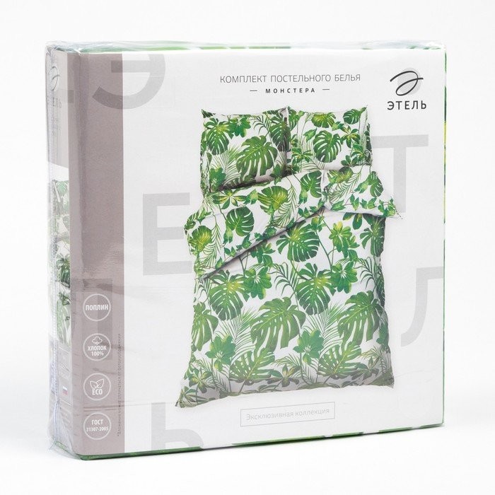 Постельное бельё «Этель» 2 сп., Монстера, размер 175×215 см, 200×220 см, 70×70 см — 2 шт