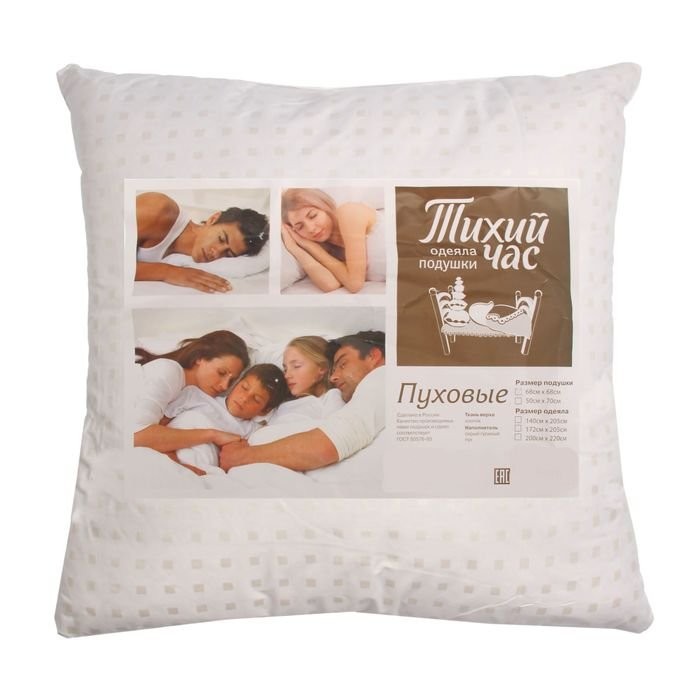 Подушка высокая Тихий Час Пуховые, размер 68×68 см, тик — модель, в качестве наполнителя которой используется серый гусиный пух, прошедший тщательную обработку. Именно поэтому изделие: