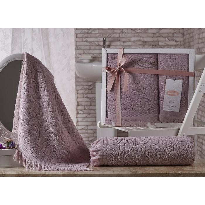 Комплект состоит из 2 полотенец (50×90 и 70×140), украшенных роскошной жаккардовой вышивкой и упакованных в красивую подарочную коробку.