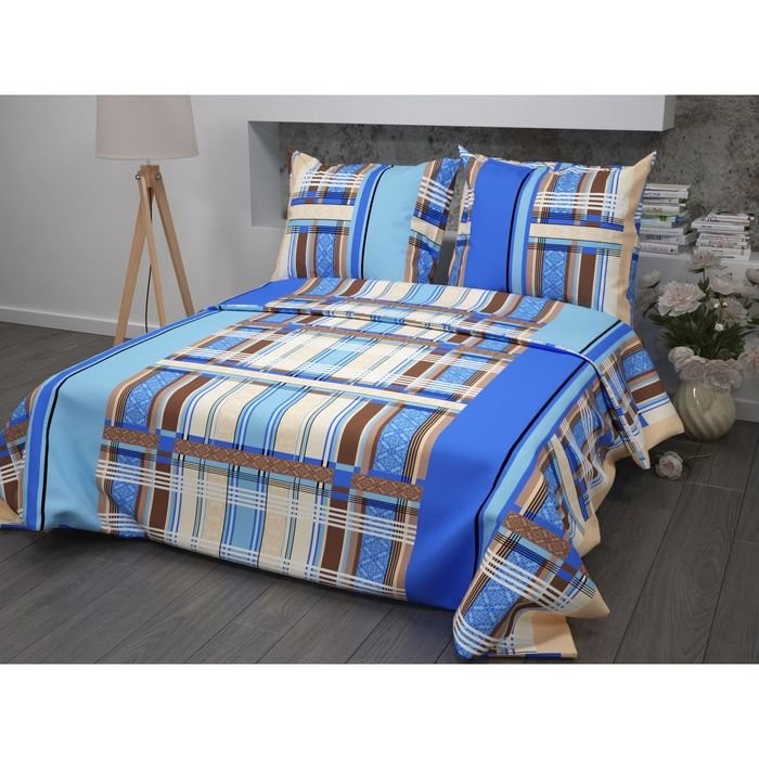 Постельное бельё 1,5 сп Samy «Геометрия», цвет синий, 147×215 см, 150×215 см, 70×70 см -2 шт бязь