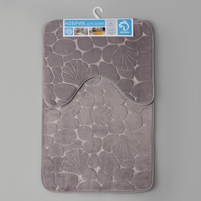 Набор ковриков для ванны и туалета Доляна «Галька, ракушки», 2 шт: 40×50, 50×80 см, цвет бежевый