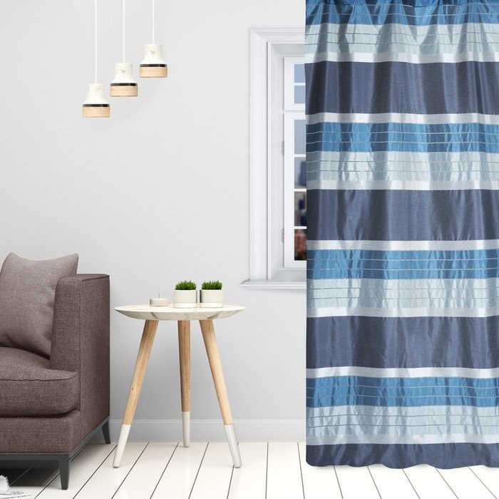 Тюль «Этель» 145×280 Гамма синий (горизонтальная полоса) б/утяжелителя, 100% п/э