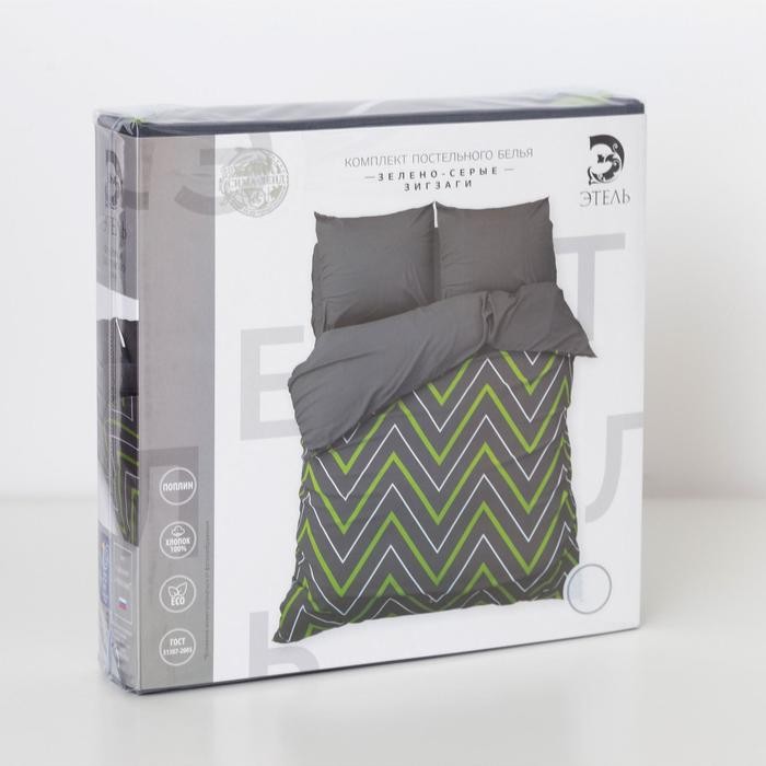 Постельное бельё Этель дуэт «Зелёно-серые зигзаги» 143×215- 2 шт, 220×240, 70×70−2 шт