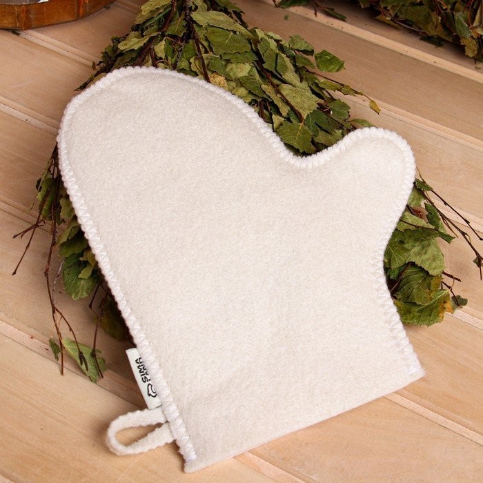 Рукавица позволяет безбоязненно поддать пару и закрыть заслонку печи. В ней вы сможете прикасаться к нагретым металлическим предметам и использовать веник. Изделие защищает от порезов, ожогов и мозолей.