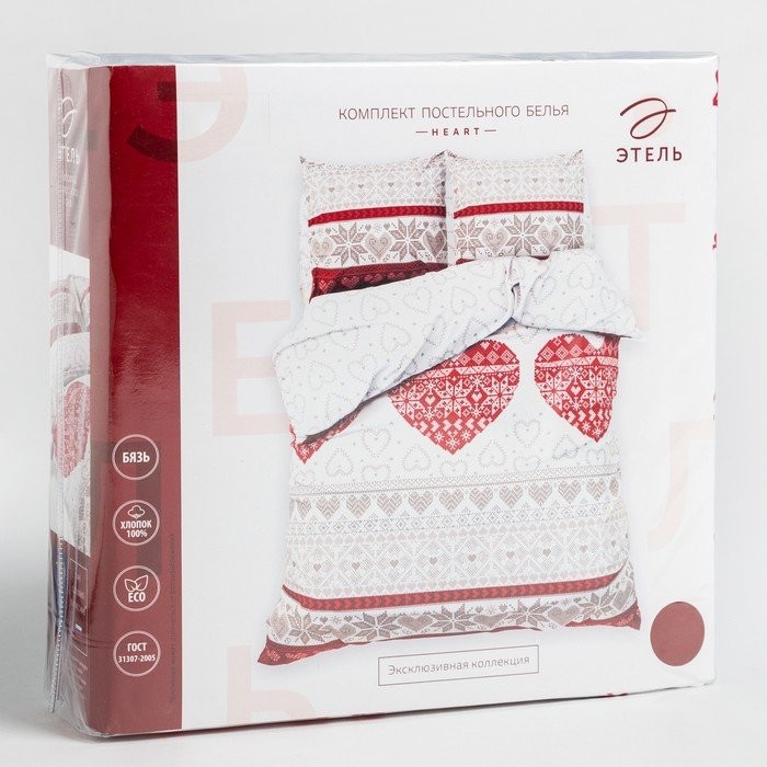 Постельное бельё «Этель» евро Heart 200*217 см, 220*240 см, 70*70 см -2 шт, 100% хл, бязь