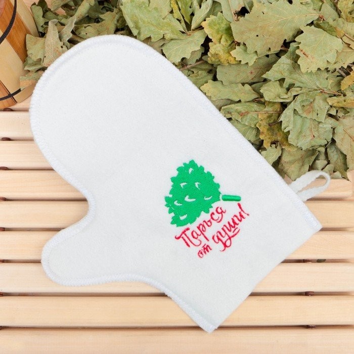 Рукавица для бани с вышивкой «Парься от души», первый сорт