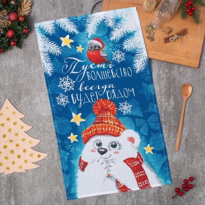 Новогодняя прнт сделает полотенце отличным подарком и создаст праздничное настроение!
