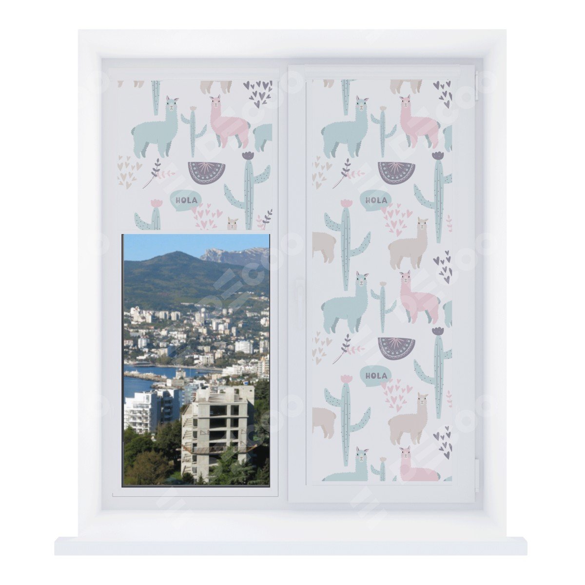 Рулонная штора Уни 2 с принтом Милый лама отлично подойдёт для интерьера: для общественных мест, комната и детская.