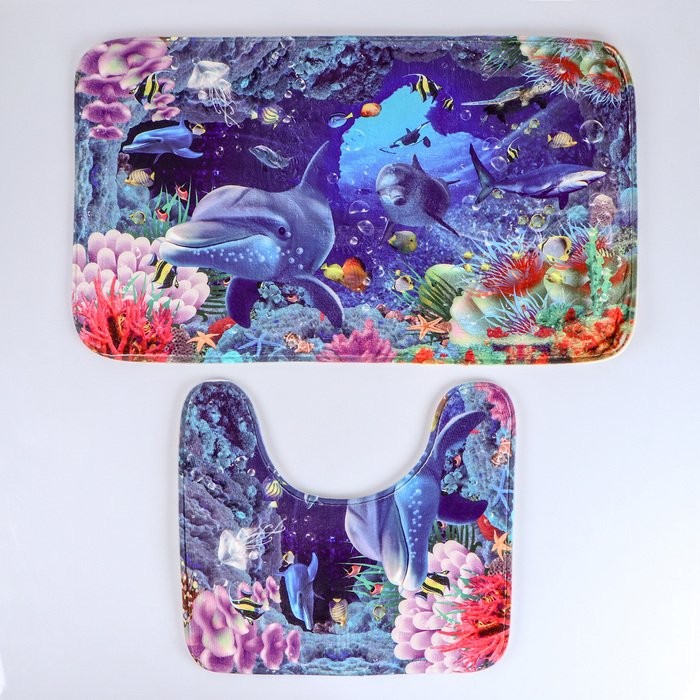 Набор ковриков для ванны и туалета Доляна «Морское дно», 2 шт: 40×45, 45×75 см