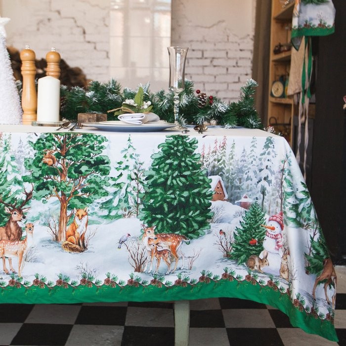 Скатерть «Этель» Новогодний лес 148×220 см с ГМВО, 100% хл, саржа 190 гр/м2