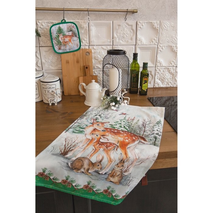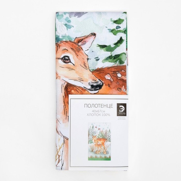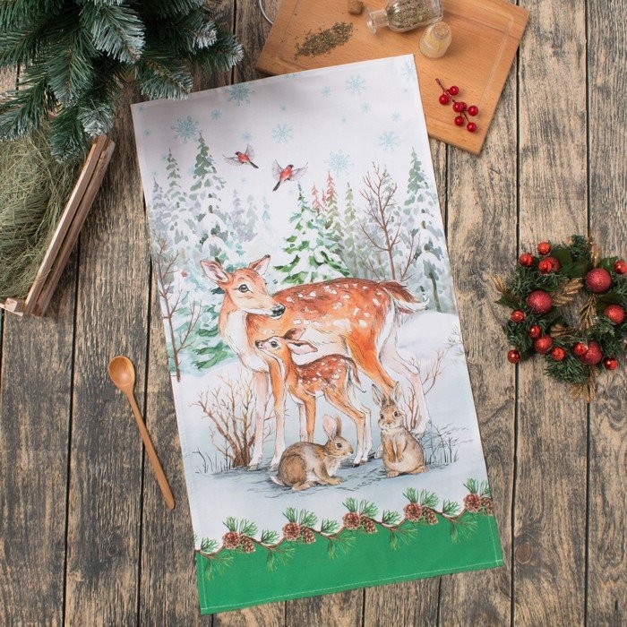 Полотенце «Олени» ТМ «Этель: Новогодний лес», 40 × 67 см, 100% хлопок, саржа, 190 г/м²