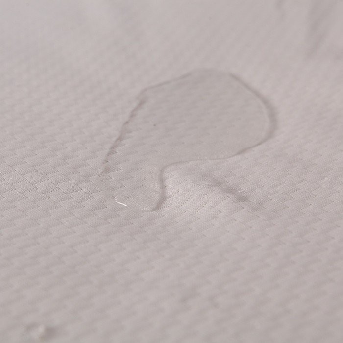 Наматрасник произведён из материала Double Jersey — термостёганого полотна плотностью 250 г/м². Это мягкий и лёгкий материал, который максимально приятен и удобен в использовании. Внутренний слой непромокаемого наматрасника служит отводчиком влаги и терморегулятором.