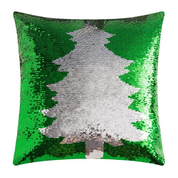 Наволочка декоративная Хамелеон 40*40 см Ёлочка (вид 2), пайетки, 100% п/э