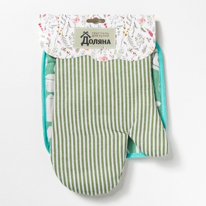 Набор Доляна, варежка+прихватка Зеленая полоска/Кухня, 100%пэ, рогожка 200 гр/м
