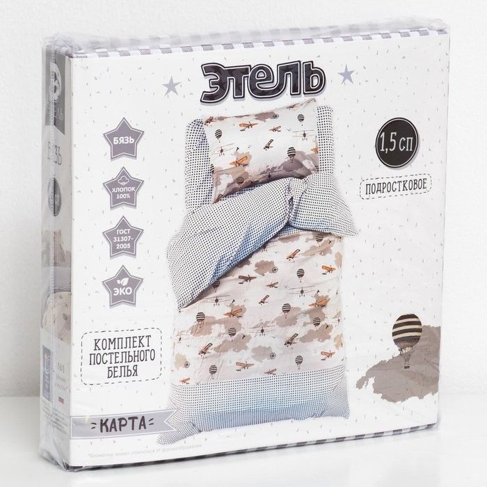 Постельное бельё Этель «Карта» 1,5 сп. 145×210 см, 150×210 см, 50×70 ± 3 см — 1 шт., 100% хлопок, бязь