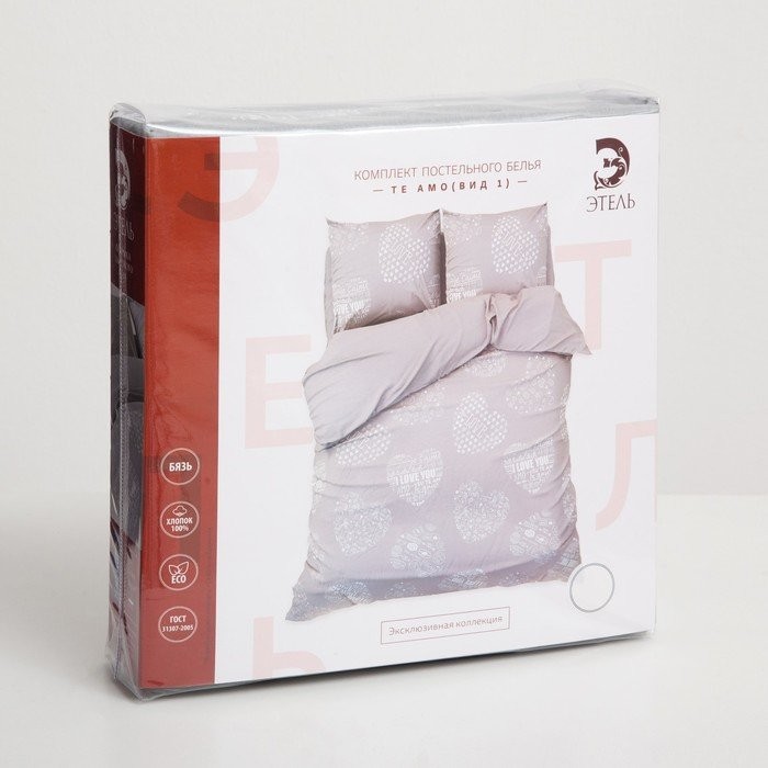 Постельное бельё «Этель» 1.5 сп Te amo (вид 1) 143×215 см,150×214 см, 70×70 — 2 шт, бязь