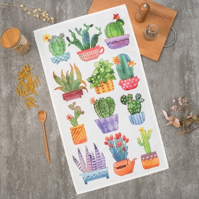 Полотенце «Этель» Кактусы 40×73 см, 100% хл, саржа 190 гр/м2
