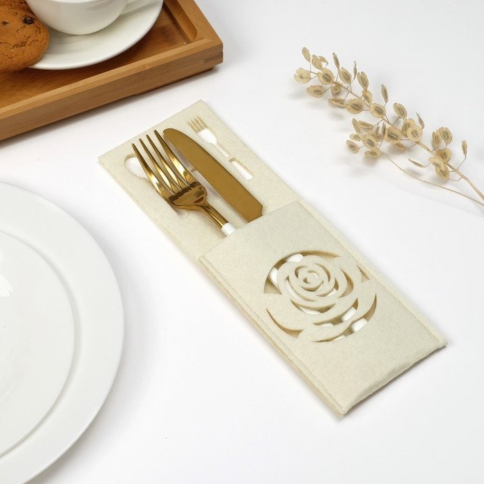 Конверт для столовых приборов Доляна"Роза» цвет молочный,9 х 25см, 100% п/э, фетр