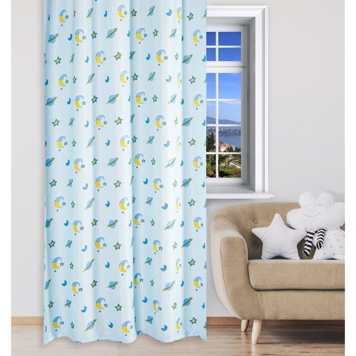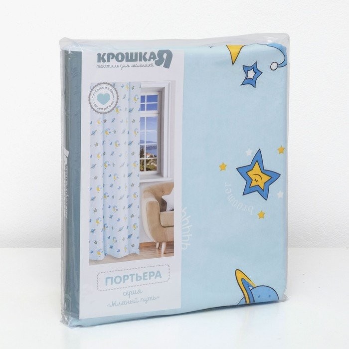 Портьера Крошка Я «Млечный путь» без держателя цвет голубой, 110×260 см, блэкаут, 100% п/э