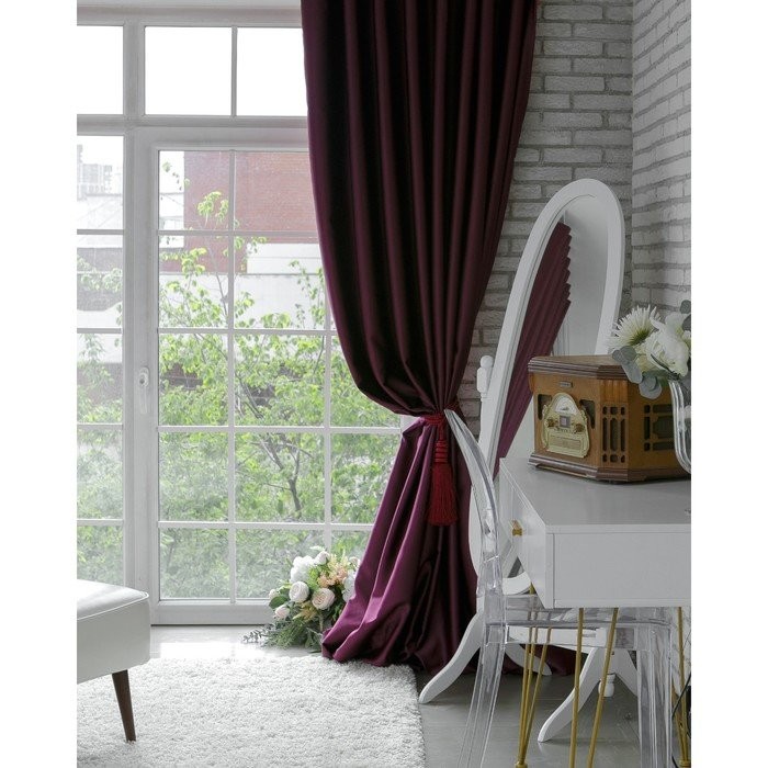 Штора портьерная «Этель» 250×265 см, двусторонний блэкаут, цвет Сливовый, пл.240г/м², 100 п/э