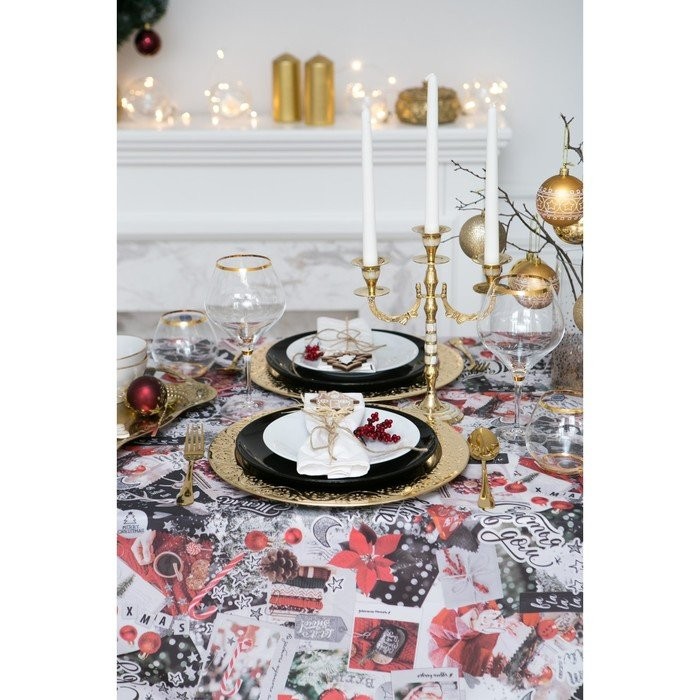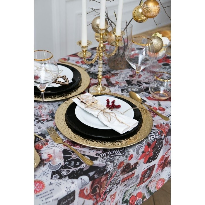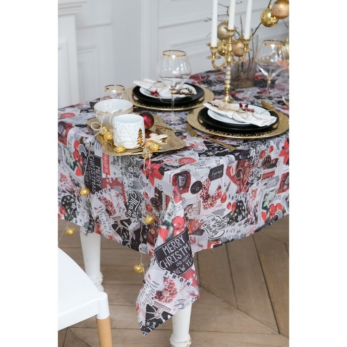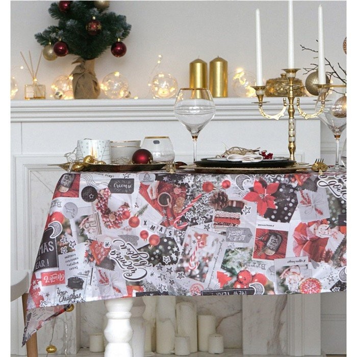 Скатерть «Доляна» Новогодний коллаж 145х220см,100% п/э, оксфорд 210 гр/м2